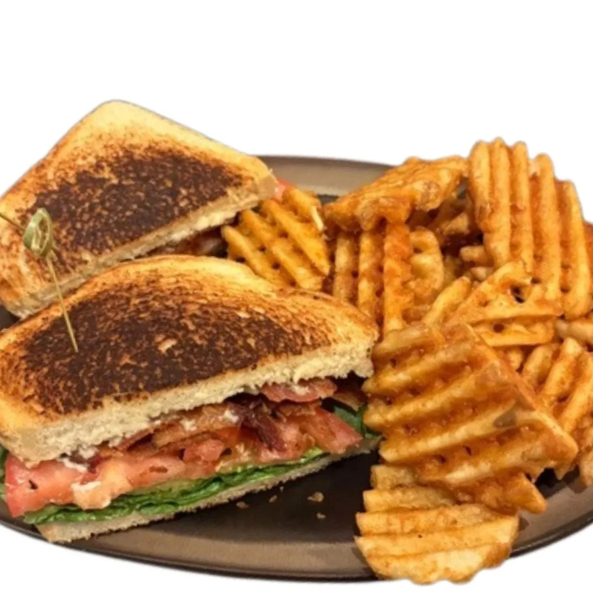 Our take on a classic with sliced sourdough, crisp romaine, fresh tomato, bacon, and a house garlic aioli spread.